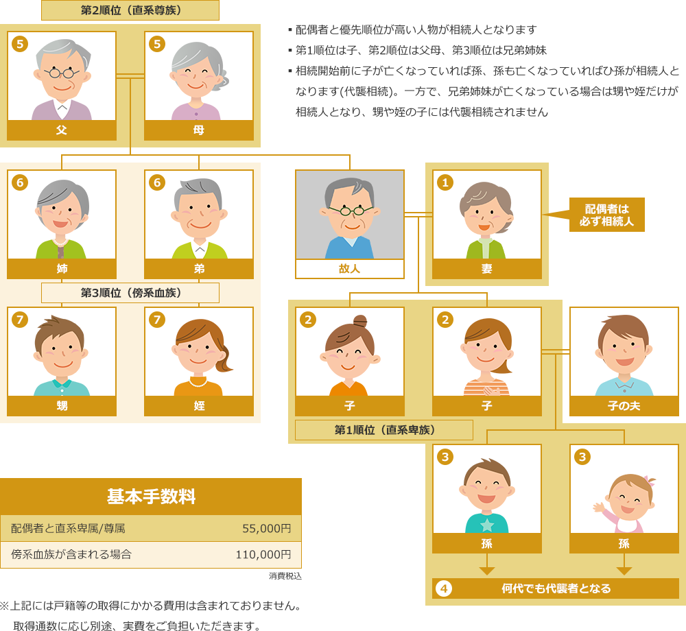 - ※上記には戸籍等の取得にかかる費用は含まれておりません。取得通数に応じ別途、実費をご負担いただきます。